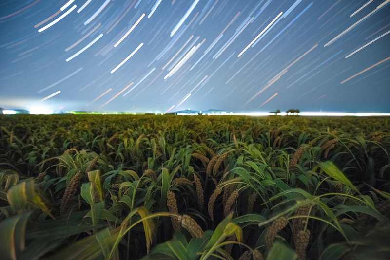 9月17日在黑龙江省佳木斯市富锦市拍摄的星空下的谷子(堆栈合成照片)。时下正值“北大仓”丰收季节。田野里各种农作物陆续成熟,空气里飘荡着收获的气息。夜幕降临,繁星闪烁,宁静的星光下...